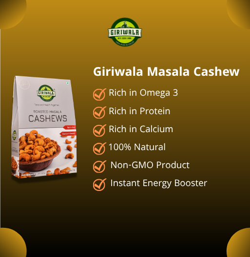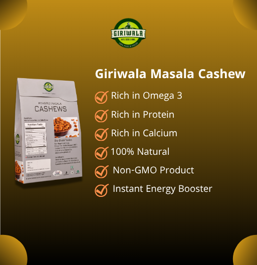 The crispy and crunchy texture of cashews , while the perfectly slow-roasted and salted duo will linger your taste buds. They not only beat those unwanted hunger pangs but can also be useful to stick to a diet plan. Introduce yourself to the concept of guilt-free snacking by shopping for Giriwala Roasted and Salted Cashews today!