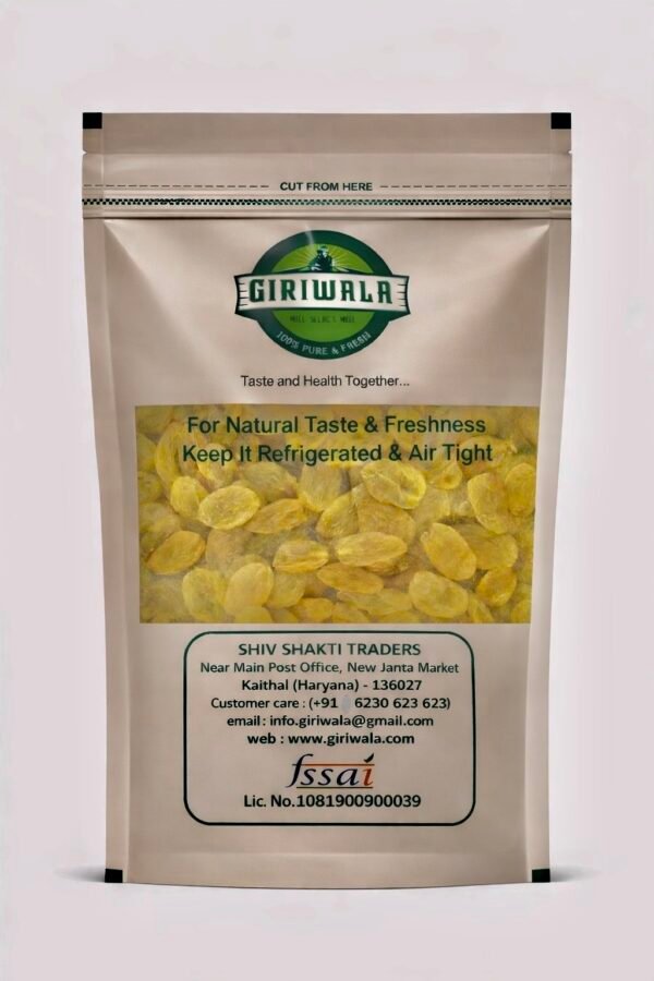 RAISINS GOLDEN ROUND from Giriwala Nut House is naturally sun-dried raisins that are plump, juicy, and full of sweetness. Handpicked from trusted sources and hygienically processed, this product is ideal for everyday snacking, cooking, and healthy living.